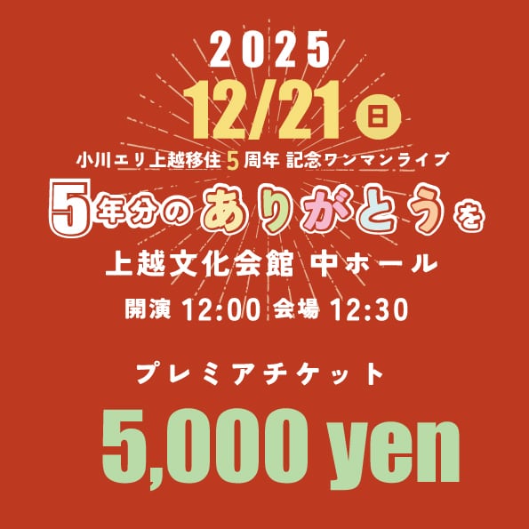 【ライブチケット/送料無料】2025.12/21(日 昼)新潟上越 上越文化会館中ホール プレミアチケット
